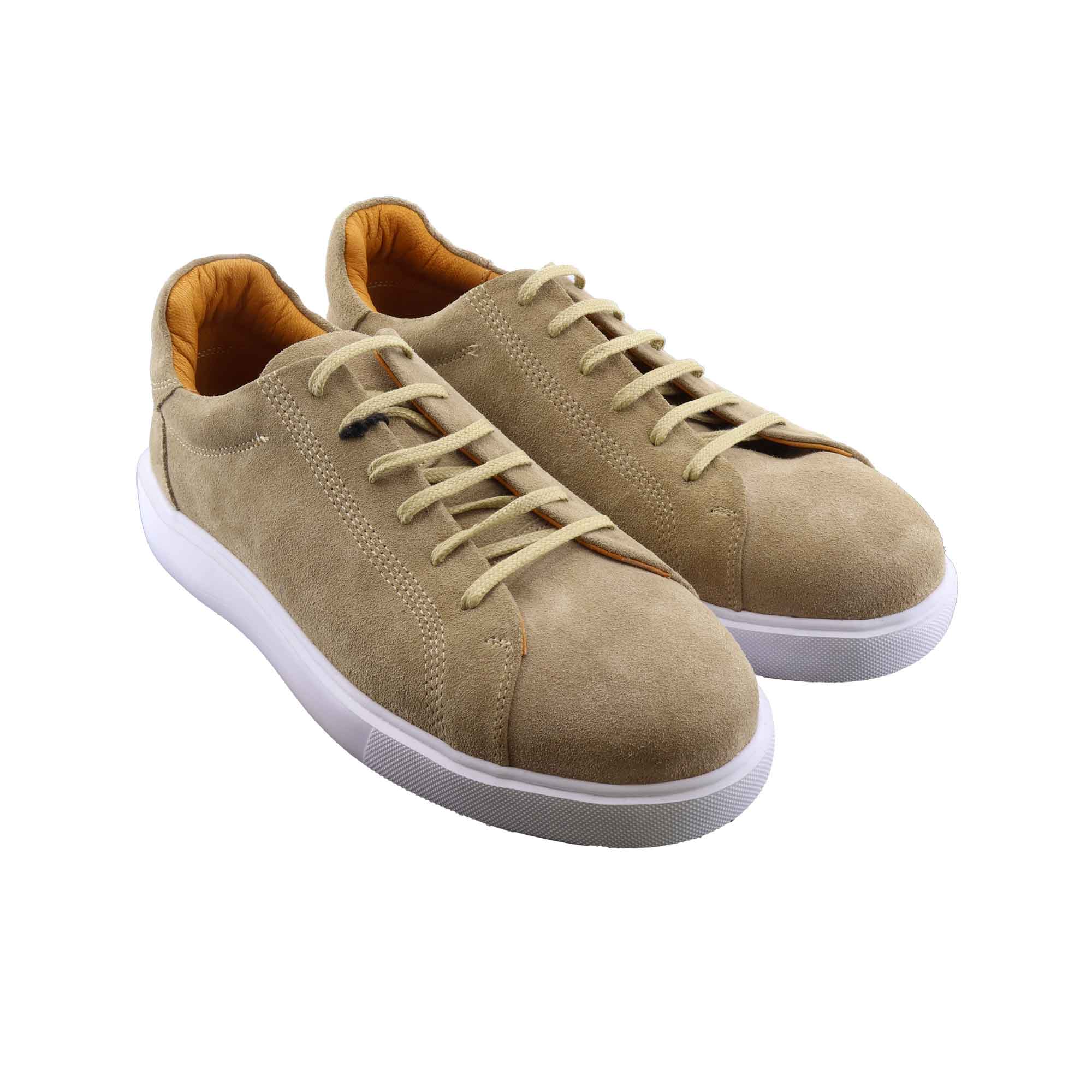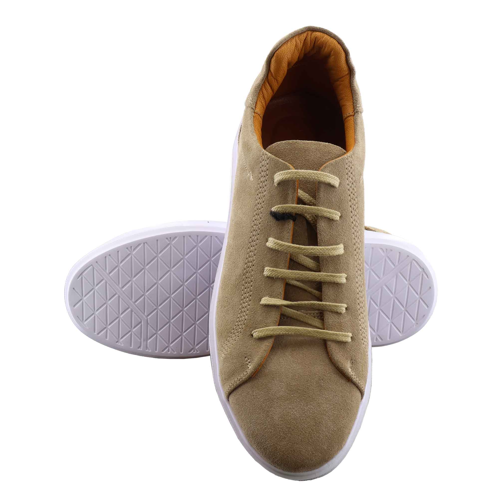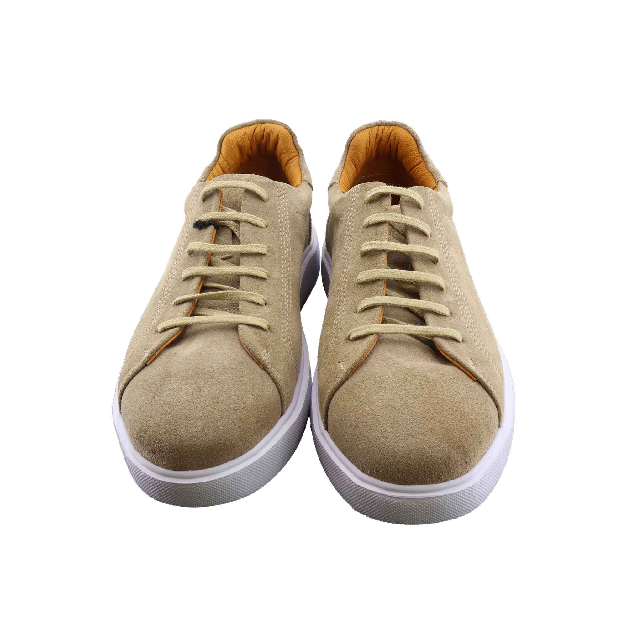 با این کفش اسپرت جیر کرم طبیعی، ظرافت، نرمی و کلاس را همزمان تجربه کنید. رویه از جیر طبیعی با کیفیت بالا ساخته شده که بافت مخملی نرم، ظاهر مات و لوکس دارد و با گذر زمان زیبایی بیشتری پیدا میکند.