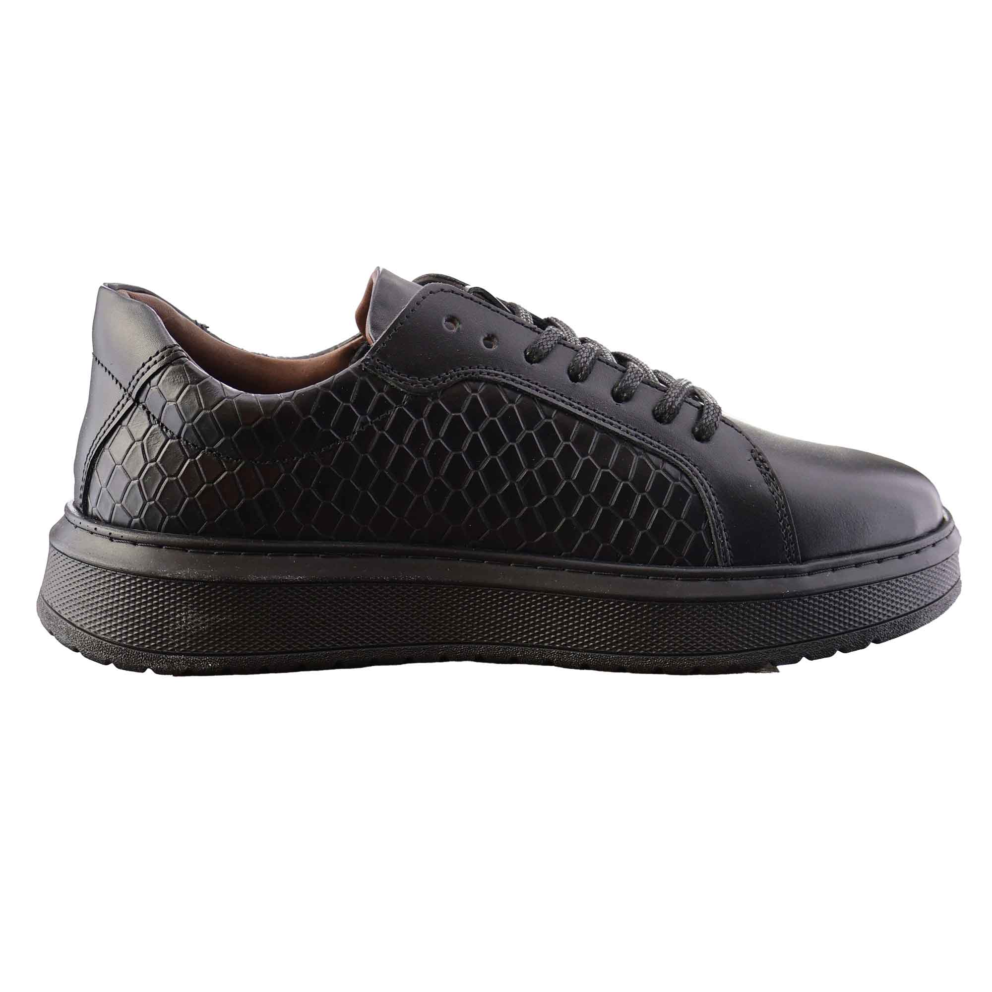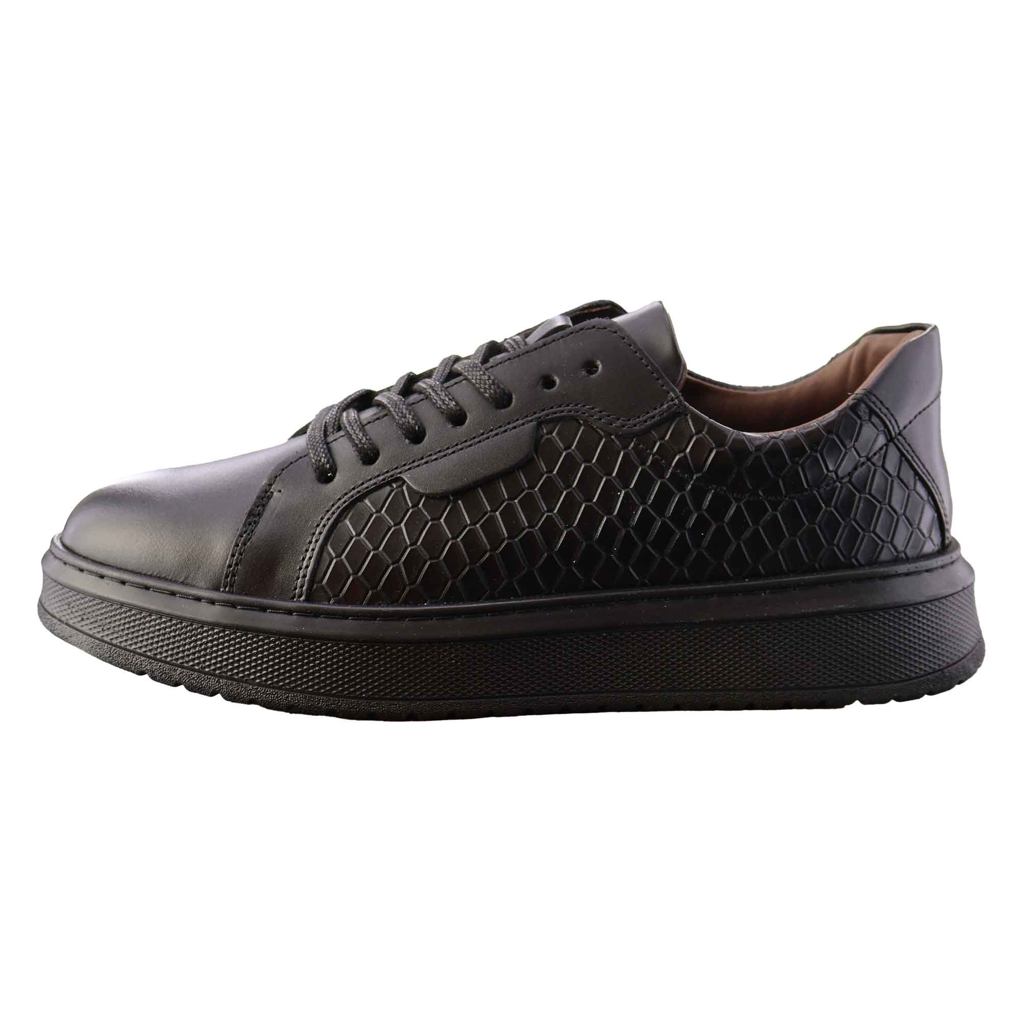 - کفش اسپرت چرمی تمام مشکی مدل پوست مار